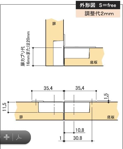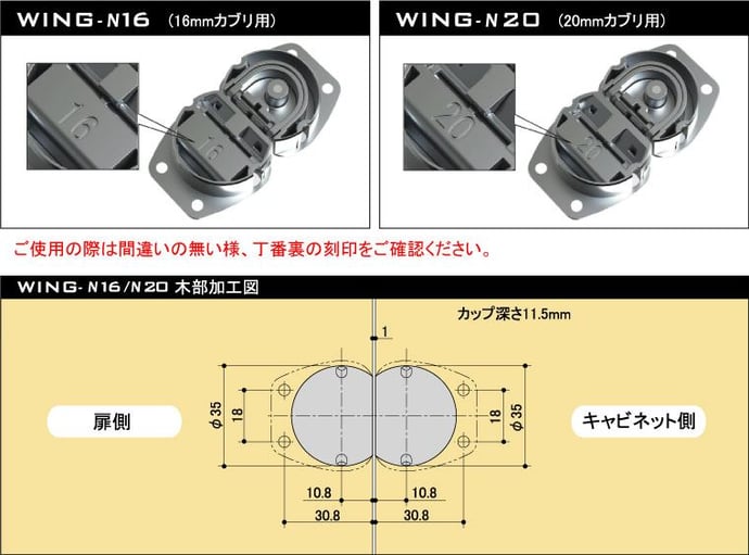近年、弊社のお客様の中にも、「20mm全部カブセたい!!」とおっしゃる方が増えております。それを叶えるのが、コチラの商品です。2つ目の特徴としましてはビスが垂直に打てるのが特徴です。そうする事で施工の効率を上げ、より正確な位置取りが可能となります。又、蝶番本体に、垂直位置出しマークが付いており、より正確に、早く、垂直出しが可能です。