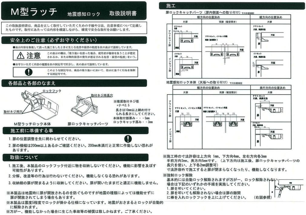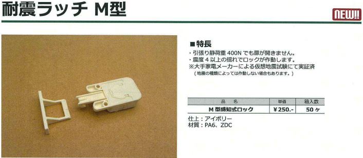 今回は、第7回オススメ商品としまして、M型耐震ラッチをご紹介致します。