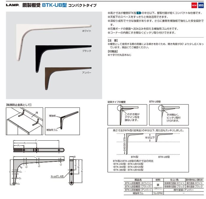 今回は、スガツネ社新製品 BTK-UB型ブラケットをご紹介致します。こちらは、従来有った、BTK型ブラケットの壁面取付方向の長さを意匠的に短くしたコンパクトタイプの物です。従来品と比べ、高さ方向が半分になった事で、見た目のスッキリ感が得られ、飾り棚には最適です。弊社も在庫致しましたので、是非お試しください。
